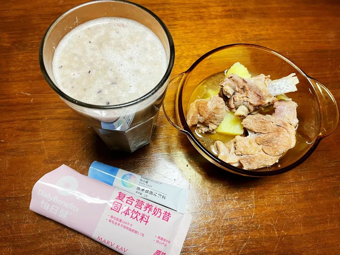 最近在实践提前晚餐时间,和晚餐尽量不吃主食用奶昔代替。 蛋白质部分加量。
