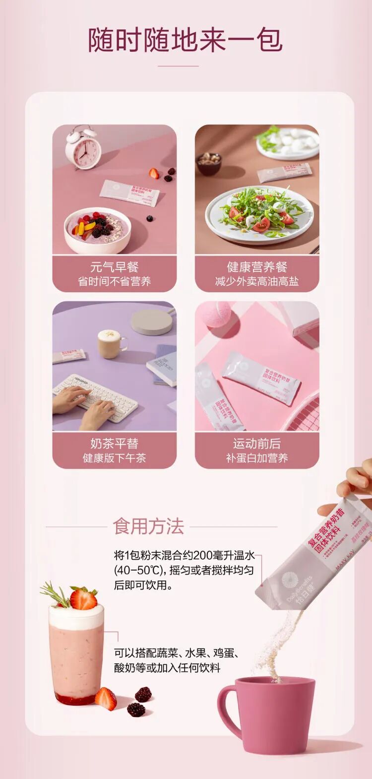 幸运的是,我们的营养奶昔含有17种营养素,精准补充每日最易缺难补的营养素。帮你均衡饮食,解决一大部分隐形饥饿。