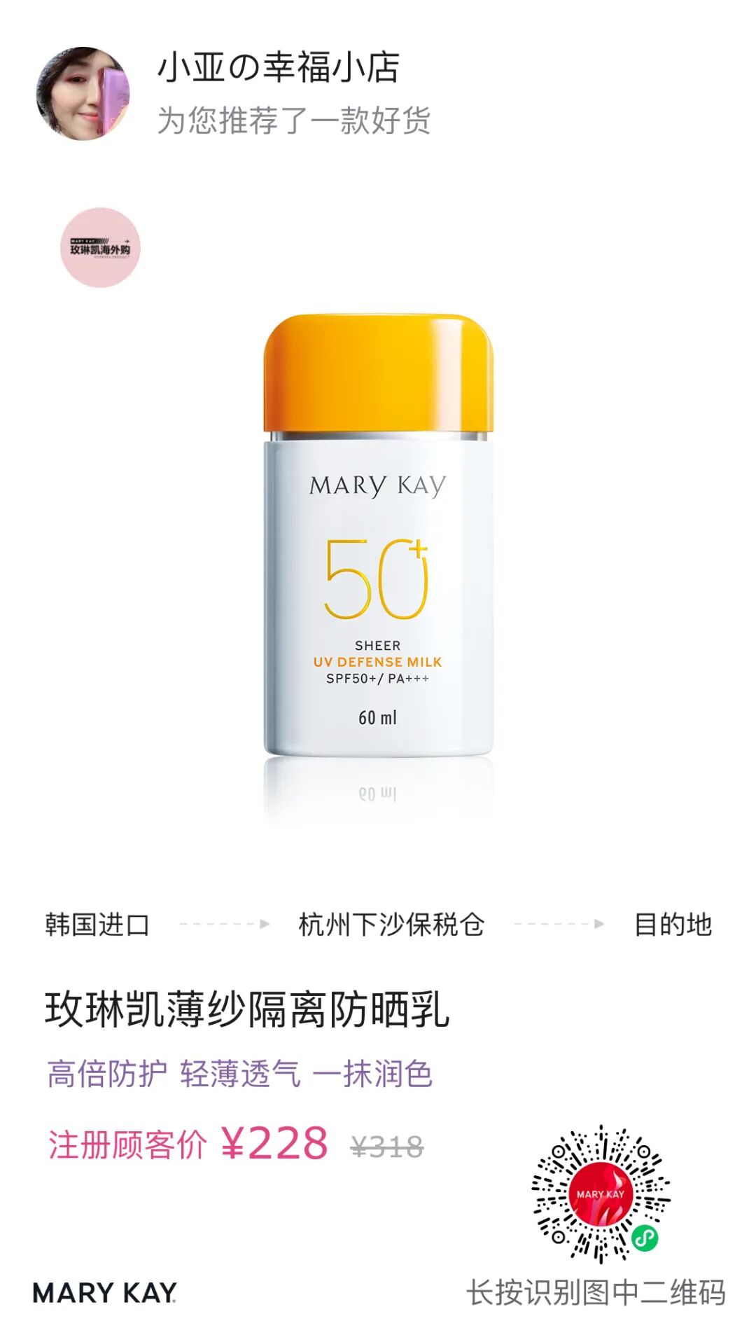 💌 有任何防晒疑问,欢迎随时咨询你的玫琳凯护肤顾问小亚老师~