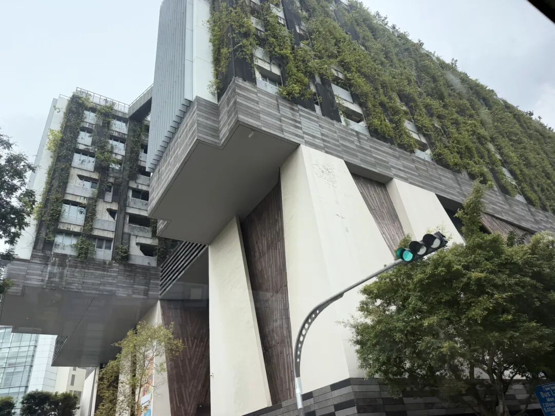 新加坡的建筑非常独特,很多高楼看上去有中间一层是种植物的,像空中花园。有些是每个阳台都是绿植。