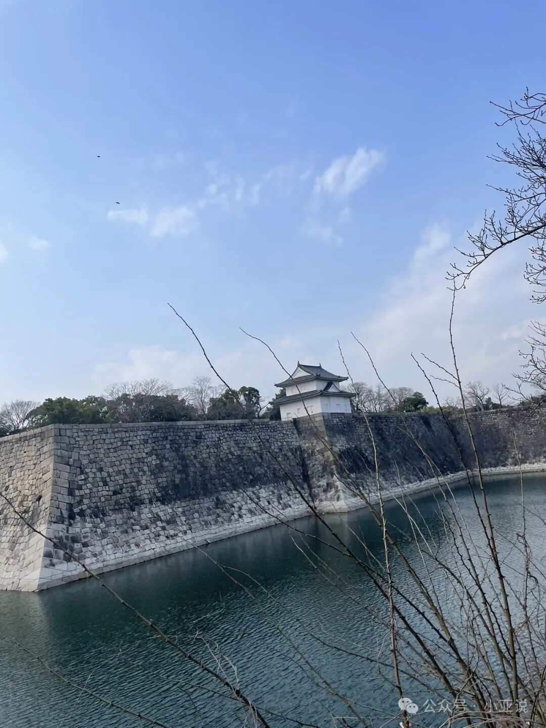 之后去了大阪另一个景点,我脚酸不想走,就远远拍了照片。 古时的日本人用石头砌的护城河。