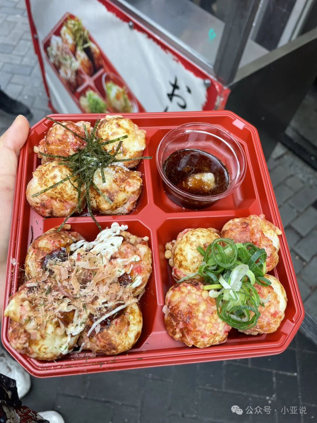 因为没吃饱,路边买了好吃的章鱼丸子。