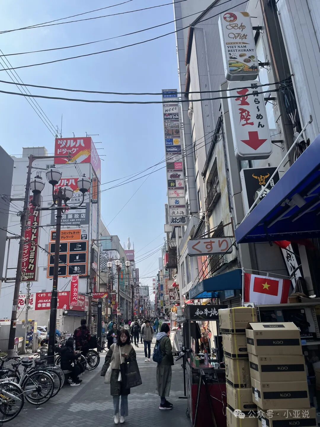和我们擦肩而过的两个男人身上有酒味,穿着西装,中年却背着方型的双肩包,看来这里是很多小酒馆,下班后的日本男人来这里小斟几杯。 哈哈,也是日剧中的场景呢。