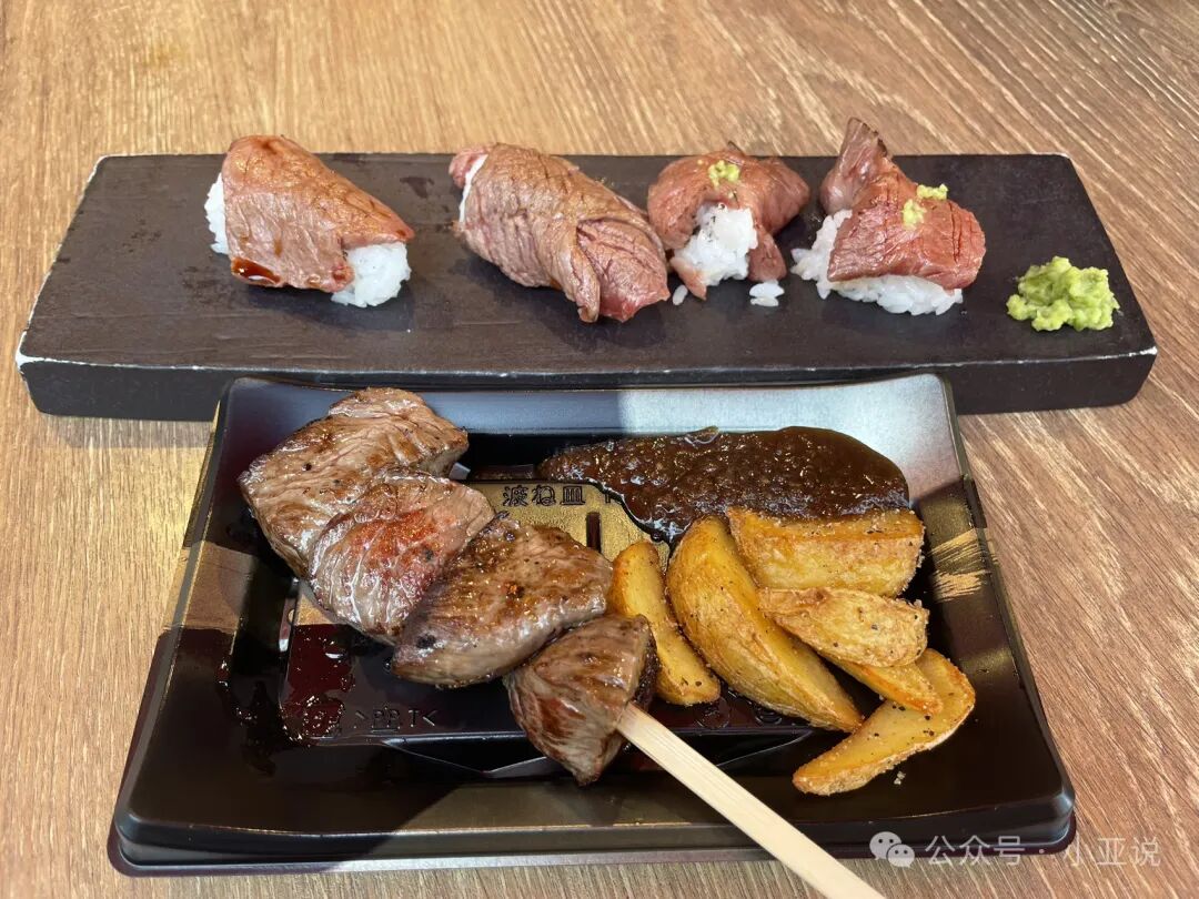 半天消费,神户牛肉串加四个寿司207块,牛肉寿司很不错,芥末里加了其他啥味好吃。