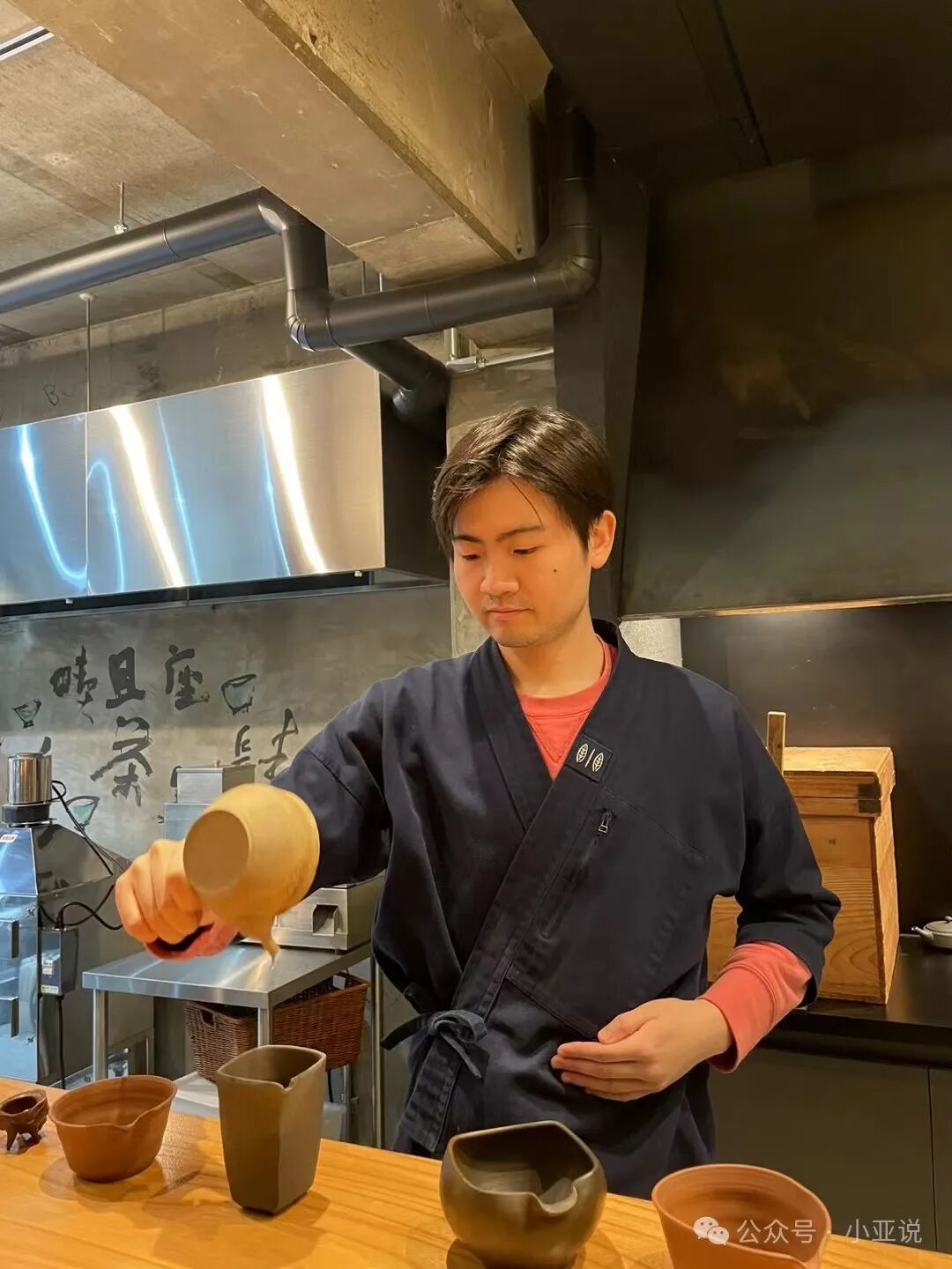 和小宇走进一间路边茶室,泡茶的小哥哥很温和,自己炒茶,烤茶,煮茶,泡茶,也卖各种茶。我们点了最便宜的两种:玄米茶,炒绿茶。很香,从喉咙暖到胃里(下午降温了)