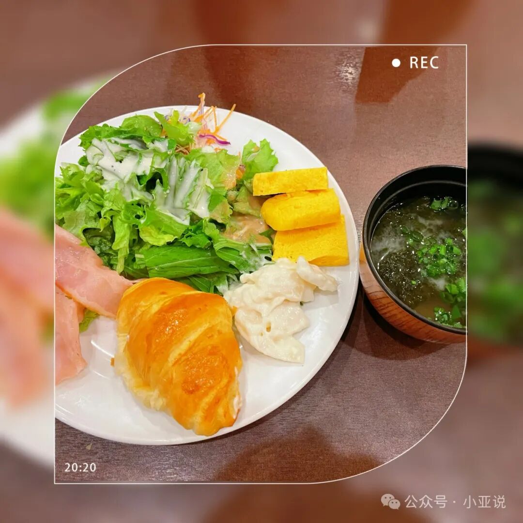 早餐的味增汤好喝,昨天蔬菜吃的少赶紧吃了一大盘。