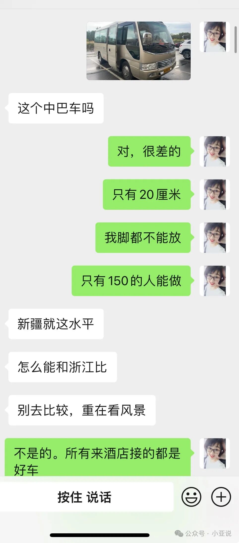 我一听,对啊!也承诺我们航空大巴车的。不然这7天,不知道要遭多少罪,因为新疆游起码三分之二时间在路上在车里度过。