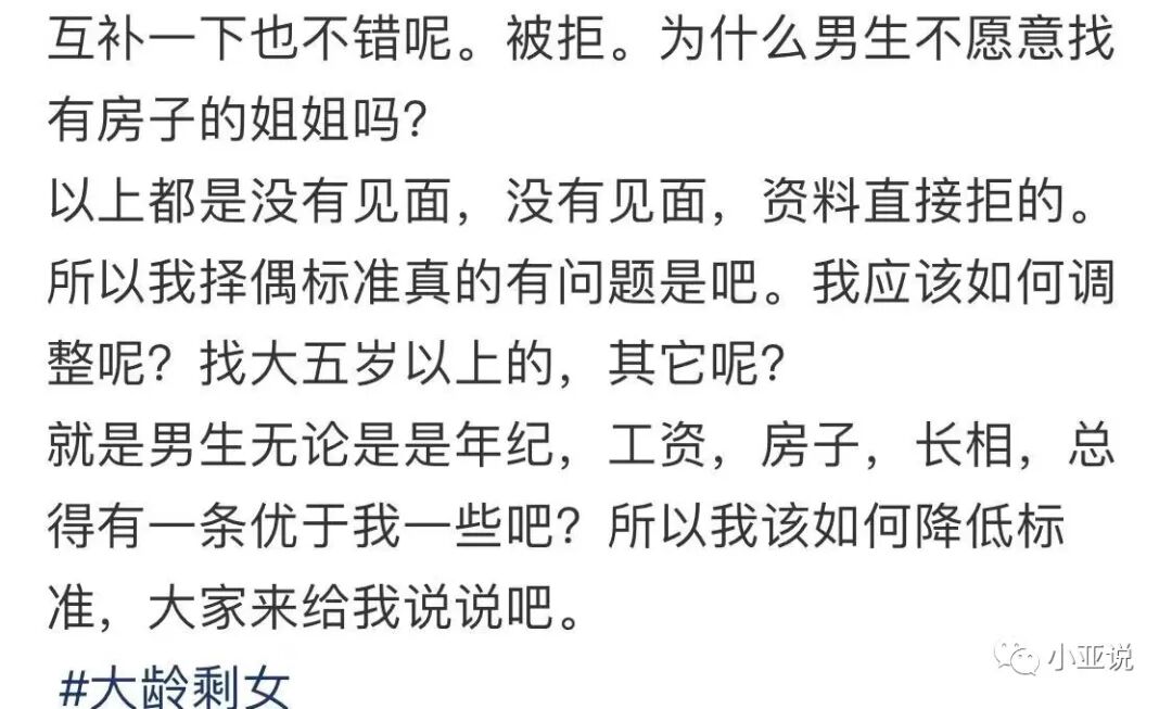 最后,她还发出一个疑问:为什么男生不愿意找有房子的小姐姐?