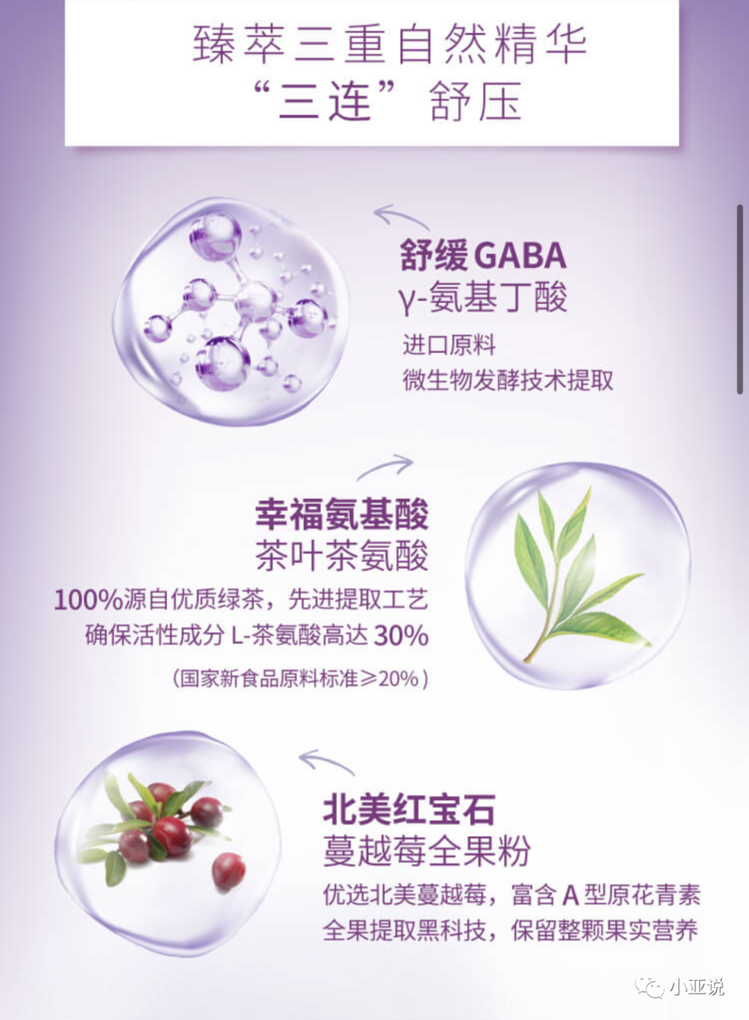 原料来自日本进口,甘蔗芯通过微生物发酵提取。日本很多饮料里都添加了这个成分,用于舒缓压力,松弛神经