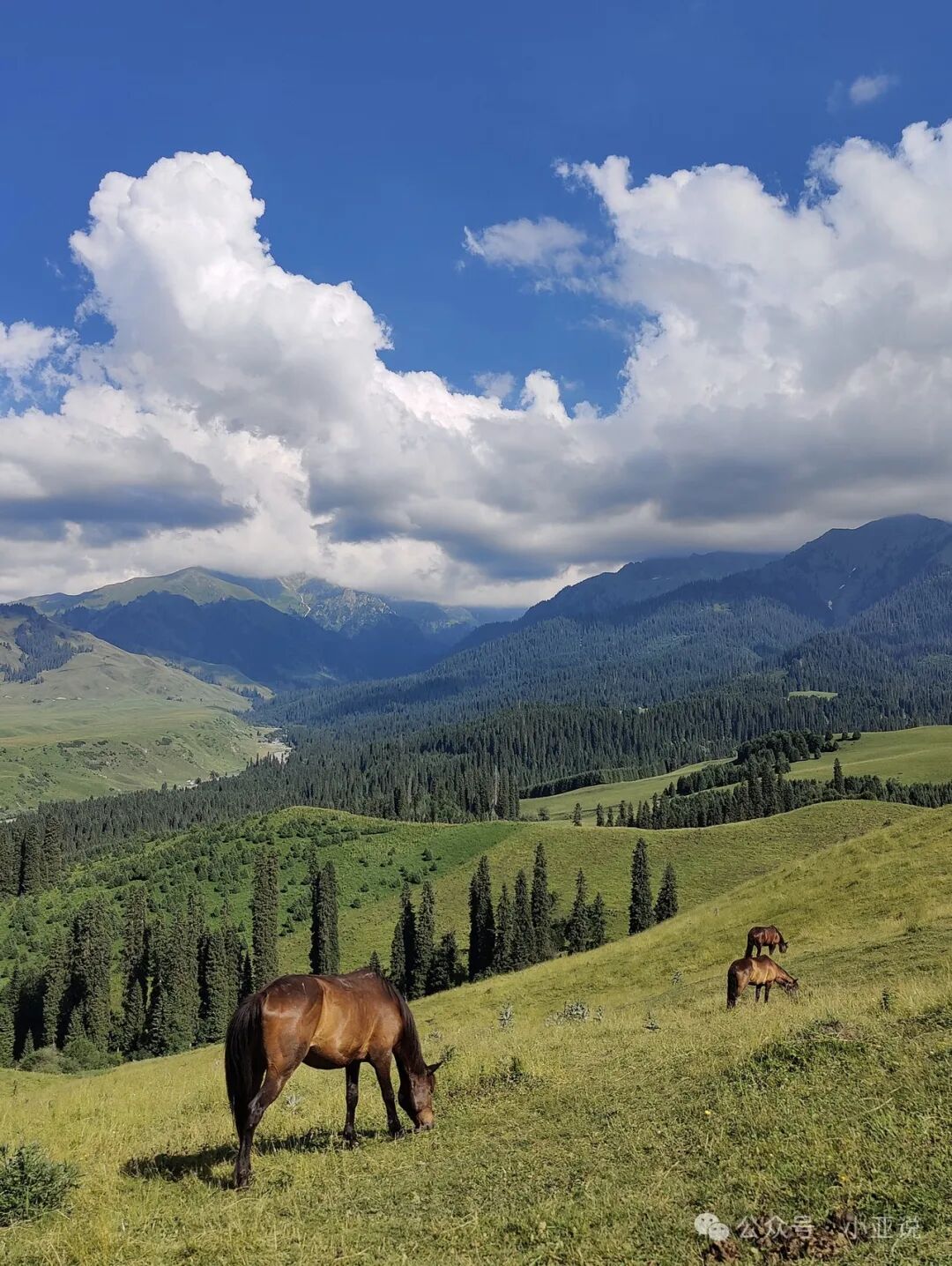 这次衣服真的没准备。下次去新疆,白色的连衣裙,半身裙,长款,一定要准备,绿色的大草原,山谷为背景,就太美了。
