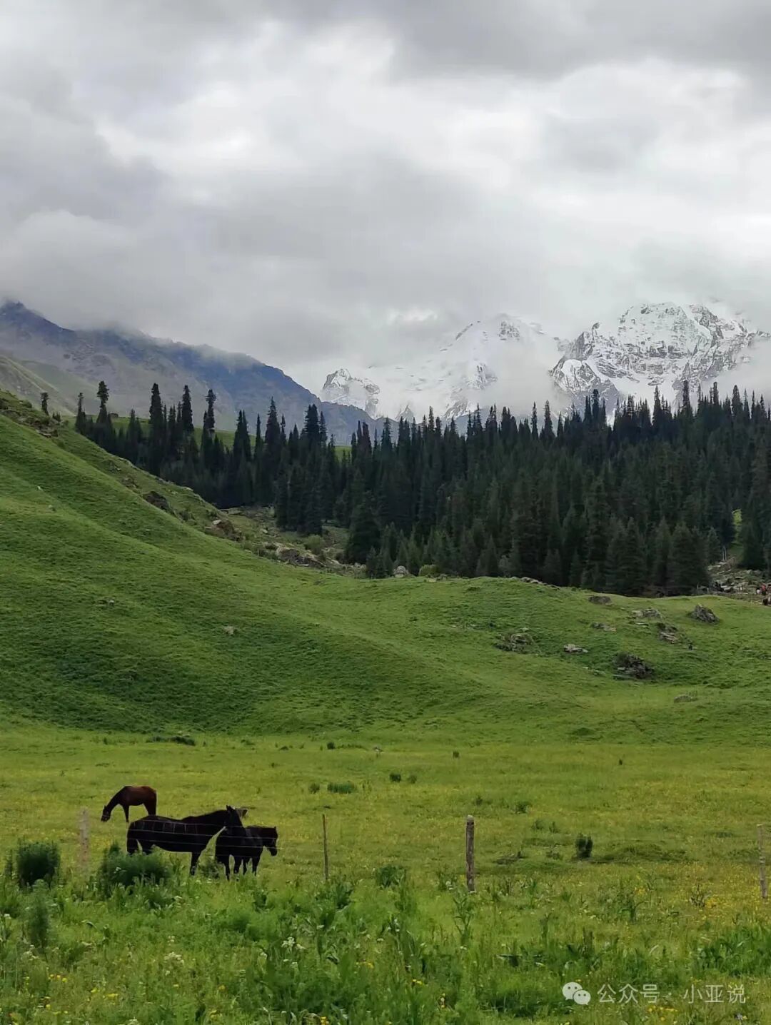 大片的草原。到了景点,买了门票进去后,区间车还要开上一两个小时,到一个站,再做观光车坐半小时,再骑马,每个地方的风景都不一样,草地,森林,雪地,也可以半天经历春夏秋冬。