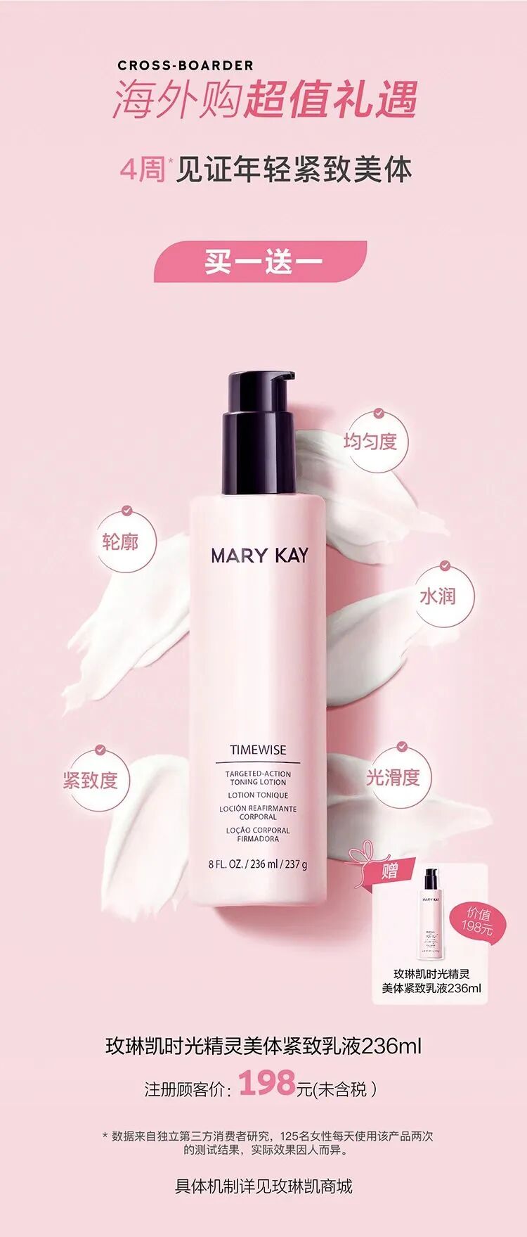 海外购超值礼遇(买一送一) 4周 * 见证年轻紧致美体 玫琳凯时光精灵美体紧致乳液236ml